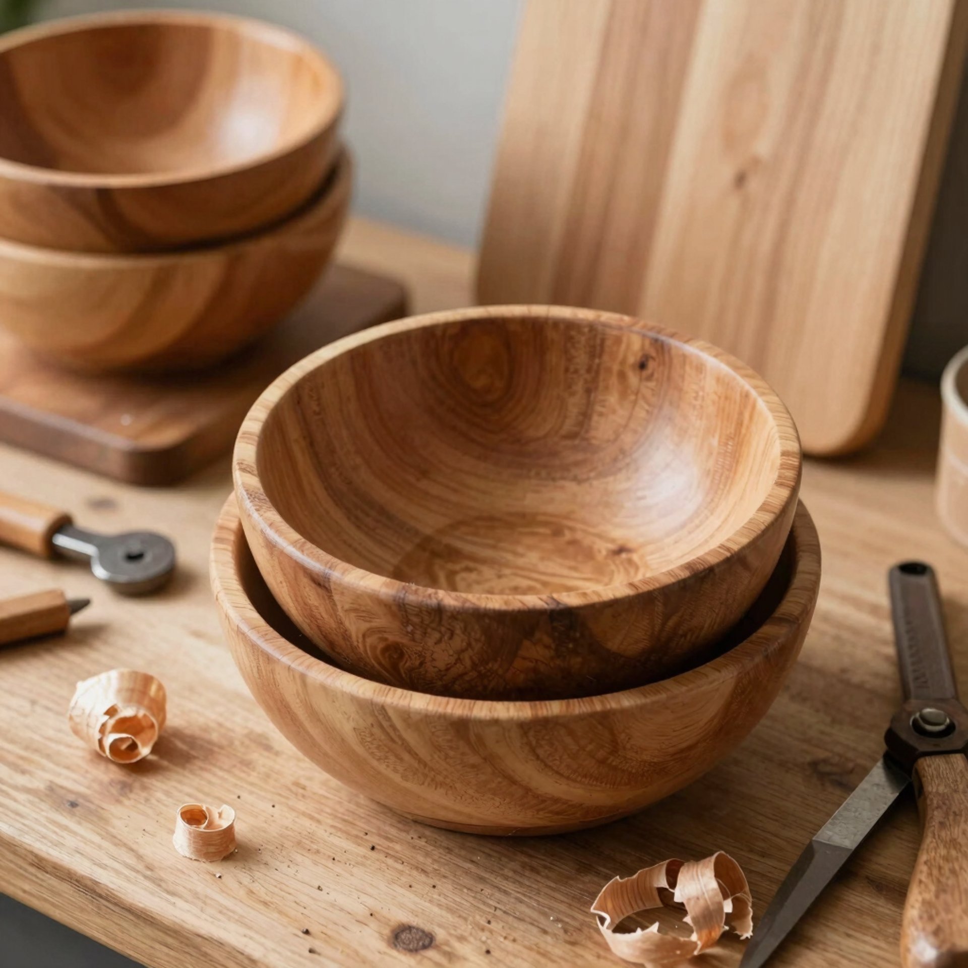 crafted wooded bowls, cutting boards and signs